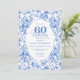Chic Royal Blue Toile Roses 60th Birthday Invite Einladung