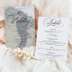 Schick und elegant schwarz-weiß alles in einer kalligraphischen Hochzeitseinladung mit uAwg, Unterkünften, Details und mehr Infos. Mit einem schönen Pinselkalligraphieskript. Fügen Sie Ihr Foto mit einem weißen Overlay hinzu.