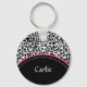 Chic Schwarz-weiß Leopard Print Pink Akzent Name Schlüsselanhänger