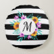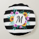 Stilvolles, rundes Kissen mit Blumenkranz auf schwarz-weiß gestreiftem Hintergrund. Passen Sie das Monogramm an, indem Sie aus vielen wunderbaren Schriftart auswählen.