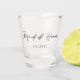 Dieses schicke, schlichte Trauzeugin-Shooting-Glas trägt den Namen Ihrer Brautjungfrau unter minimalistischer Schwarztypografie. Dieses elegante, moderne Brautgeschenk für Ihre Hochzeit oder Ihren Junggeselinnen-Abschied.