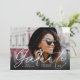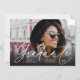Die Ankündigung des modernen Abschluss-Fotos zeichnet sich durch ein horizontal oder landschaftsorientiertes Foto aus. "Graduate" überlagert sich in handgeschriebener Schrift mit dem Namen, der Schule und dem Abschluss im Jahr darunter. Fügen Sie der Rückseite eine persönliche Nachricht und ein zusätzliches Foto hinzu.