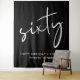 Die schicke schwarze Tapisserie-Kulisse für Ihr 60. Geburtstagsfeier-Begrüßungsschild und Foto-Prop mit "60" in einem großen weißen Drehbuch präsentiert und Ihr Name und das Datum in der modernen weißen Schrift.