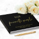 Schick schwarzes Hochzeitsgast-Buch mit Ihrer Wahl von echter Goldfolie, Silber oder Rose, "Our Favorite People" in einfacher Typografie und einem modernen Drehbuch, Ihren Vornamen in klassisch eleganter Serifentypografie und Ihrem Hochzeitsdatum. Personalisieren Sie Ihren Titel auf der Wirbelsäule und fügen Sie ein beliebtes Foto auf der Rückseite hinzu.