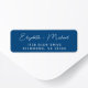 Chic klassisch blaue Rücksendeadresse für Ihre Speicherung der Daten, Hochzeitseinladungen, Dankeschön-Karten und andere Hochzeitskorrespondenz mit Ihren Namen in einem stilvollen weißen kalligraphischen Skript und Ihre Adresse in sauberer, weißer Schrift.
