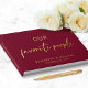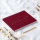 Chic bordeauxrotes Hochzeitsgast-Buch mit Ihrer Wahl von echter Gold-, Silber- oder Rose-Goldfolie, "Our Favorite People" in einfacher Typografie und einem modernen Drehbuch, Ihren Namen in klassisch eleganter Serifentypografie und Ihrem Hochzeitsdatum. Personalisieren Sie Ihren Titel auf der Wirbelsäule und fügen Sie ein beliebtes Foto auf der Rückseite hinzu.