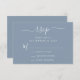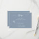 Die elegante blaue Hochzeitskarte RSVP mit "uAwg" in einem stilvollen, weißen Drehbuch, schlichter und eleganter weißer Typografie und Ihren Namen, die durch ein Herz auf der Rückseite verbunden sind.