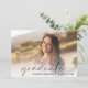 Elegante Graduiertenfeier mit dem Foto des Absolventen, überlagert mit "Graduate" in einem schicken, modernen Drehbuch und ihrem Namen und Klassenjahr in einfacher Schrift. Auf der Rückseite, fügen Sie Ihre Abschlussfeier Details.