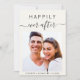 Moderne, helle cremefarbene Hochzeitseinladung mit Ihrem Foto, "Happily Ever After" in einfacher Typografie und einem schicken Drehbuch mit Swashes, Vornamen und Hochzeitsdatum, verbunden mit Herzenslust. Auf der Rückseite, personalisieren Sie Ihre Einladung in eleganter Typografie und geben Sie Ihre Website Adresse Ihrer Hochzeit, um einen QR-Code für Ihre Gäste zu erstellen, um online scannen und um zusätzliche Hochzeitsdetails wie Unterkünfte und Anleitungen zu erhalten.