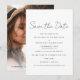 Schick Save the Date Hochzeitsankündigung mit "Save the Date" in einem minimalen modernen Drehbuch und Ihre personalisierten Details in einfacher Typografie. Auf der Rückseite befindet sich Ihr Foto, das mit Vornamen und Hochzeitstermin überlagert wird.