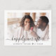 Moderne Ankündigung Datum freihalten Postkarte mit Ihrem Foto überlagert mit "fröhlich immer danach" in einem schicken Skript mit Swashes und Ihre Namen und Hochzeitstag verbunden mit einem Herz. Auf der Rückseite passen Sie Ihre Save the Date Nachricht an und fügen Sie Ihre Namen in ein signaturähnliches Skript ein.