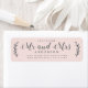 Chic, modern und einfach Brautadressen-Label mit dem Text der Zukunft Mr. und Mrs. in off-black elegante Drehkalligraphie auf pastellrosa Hintergrund mit einer stilvollen Touch von rustikalem Blattwerk. Fügen Sie einfach Ihren Namen und Ihre Adresse hinzu. Exklusiv für Sie entworfen von Happy Dolphin Studio. Wenn Sie Hilfe oder passende Produkte benötigen, kontaktieren Sie uns bitte über unseren Chat. Wir helfen Ihnen gerne, Ihre Hochzeit zum schönsten Tag zu machen!