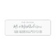 Chic, modern und einfach Brautadressen-Label mit dem Text der Zukunft Mr. und Mrs. in off-black elegante Drehbuch. Fügen Sie einfach Ihren Namen und Ihre Adresse hinzu. Exklusiv für Sie entworfen von Happy Dolphin Studio. Wenn Sie Hilfe oder passende Produkte benötigen, kontaktieren Sie uns bitte unter happydolphinstudio@outlook.com. Wir helfen Ihnen gerne, Ihre Hochzeit zum schönsten Tag zu machen!