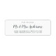 Chic, modern und einfach Brautadressen-Label mit dem Text der Zukunft Mr. und Mrs. in off-black elegante Drehbuch. Fügen Sie einfach Ihren Namen und Ihre Adresse hinzu. Exklusiv für Sie entworfen von Happy Dolphin Studio. Wenn Sie Hilfe oder passende Produkte benötigen, kontaktieren Sie uns bitte unter happydolphinstudio@outlook.com. Wir helfen Ihnen gerne, Ihre Hochzeit zum schönsten Tag zu machen!