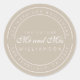 Schick, modern und schlicht, Schwarz-Weiß-Hochzeitskalligraphie klassischer Rundaufkleber mit dem Text der Zukunft Mr. und Mrs. in weißer, eleganter Schrift Kalligraphie auf grauem Hintergrund. Fügen Sie einfach Ihren Namen und Ihre Adresse hinzu. Exklusiv für Sie entworfen von Happy Dolphin Studio. Wenn Sie Hilfe oder passende Produkte benötigen, kontaktieren Sie uns bitte unter happydolphinstudio@outlook.com. Wir helfen Ihnen gerne, Ihre Hochzeit zum schönsten Tag zu machen!