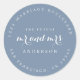 Chic, modern und einfach Hochzeitskalligraphie klassischer Rundaufkleber mit dem Text der Zukunft Mr. und Mrs. in weißer, eleganter handgeschriebener Schrift Kalligraphie auf Vintagem blauen Hintergrund. Fügen Sie einfach Ihren Namen und Ihre Adresse hinzu. Exklusiv für Sie entworfen von Happy Dolphin Studio. Wenn Sie Hilfe oder passende Produkte benötigen, kontaktieren Sie uns bitte unter happydolphinstudio@outlook.com. Wir helfen Ihnen gerne, Ihre Hochzeit zum schönsten Tag zu machen!
