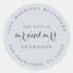 Chic, modern und einfach Hochzeitsticker Rücksendeadresse klassischer Rundaufkleber mit dem Text der Zukunft Mr. und Mrs. in off-black elegante Schrift Kalligraphie auf pastellblauem Hintergrund. Fügen Sie einfach Ihren Namen und Ihre Adresse hinzu. Exklusiv für Sie entworfen von Happy Dolphin Studio. Wenn Sie Hilfe oder passende Produkte benötigen, kontaktieren Sie uns bitte unter happydolphinstudio@outlook.com. Wir helfen Ihnen gerne, Ihre Hochzeit zum schönsten Tag zu machen!