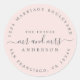 Schick, modern und einfach Hochzeitsklebstoff, klassischer Rundaufkleber mit dem Text der Zukunft Mr. und Mrs. in schwarz-elegantem Drehbuch auf pastellrosa Hintergrund. Fügen Sie einfach Ihren Namen und Ihre Adresse hinzu. Exklusiv für Sie entworfen von Happy Dolphin Studio. Wenn Sie Hilfe oder passende Produkte benötigen, kontaktieren Sie uns bitte unter happydolphinstudio@outlook.com. Wir helfen Ihnen gerne, Ihre Hochzeit zum schönsten Tag zu machen!