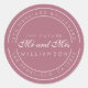 Schick, modern und schlicht, Schwarz-Weiß-Hochzeitskalligraphie klassischer Rundaufkleber mit dem Text der Zukunft Mr. und Mrs. in weißer, eleganter Schriftzeichen-Kalligraphie auf lila Hintergrund. Fügen Sie einfach Ihren Namen und Ihre Adresse hinzu. Exklusiv für Sie entworfen von Happy Dolphin Studio. Wenn Sie Hilfe oder passende Produkte benötigen, kontaktieren Sie uns bitte unter happydolphinstudio@outlook.com. Wir helfen Ihnen gerne, Ihre Hochzeit zum schönsten Tag zu machen!