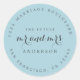 Chic, modern und einfach Hochzeitskalibrierung klassischer Rundaufkleber mit dem Text der Zukunft Mr. und Mrs. in Off-Black-elegante Schrift Kalligraphie auf blauem Glühhintergrund. Fügen Sie einfach Ihren Namen und Ihre Adresse hinzu. Exklusiv für Sie entworfen von Happy Dolphin Studio. Wenn Sie Hilfe oder passende Produkte benötigen, kontaktieren Sie uns bitte unter happydolphinstudio@outlook.com. Wir helfen Ihnen gerne, Ihre Hochzeit zum schönsten Tag zu machen!