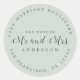 Chic, modern und einfach Hochzeitsticker mit klassischem Rundaufkleber mit dem Text der Zukunft Mr. und Mrs. in Off-Black handgeschriebene, elegante Drehkalligraphie auf einem milchig grünen Hintergrund. Fügen Sie einfach Ihren Namen und Ihre Adresse hinzu. Exklusiv für Sie entworfen von Happy Dolphin Studio. Wenn Sie Hilfe oder passende Produkte benötigen, kontaktieren Sie uns bitte unter happydolphinstudio@outlook.com. Wir helfen Ihnen gerne, Ihre Hochzeit zum schönsten Tag zu machen!