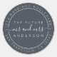 Chic, modern und einfach Hochzeitsklebstoff, klassischer Rundaufkleber mit dem Text der Zukunft Mr. und Mrs. in weißer, eleganter Schrift auf dunkelblauem Hintergrund. Fügen Sie einfach Ihren Namen und Ihre Adresse hinzu. Exklusiv für Sie entworfen von Happy Dolphin Studio. Wenn Sie Hilfe oder passende Produkte benötigen, kontaktieren Sie uns bitte unter happydolphinstudio@outlook.com. Wir helfen Ihnen gerne, Ihre Hochzeit zum schönsten Tag zu machen!