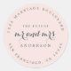 Chic, modern und einfach Hochzeitskalligraphie klassischer Rundaufkleber mit dem Text der Zukunft Mr. und Mrs. in Off-Black-elegante Schrift Kalligraphie auf pastellrosa Hintergrund. Fügen Sie einfach Ihren Namen und Ihre Adresse hinzu. Exklusiv für Sie entworfen von Happy Dolphin Studio. Wenn Sie Hilfe oder passende Produkte benötigen, kontaktieren Sie uns bitte unter happydolphinstudio@outlook.com. Wir helfen Ihnen gerne, Ihre Hochzeit zum schönsten Tag zu machen!