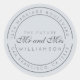 Chic, modern und einfach Hochzeitskalligraphie klassischer Rundaufkleber mit dem Text der Zukunft Mr. und Mrs. in off-black elegante Drehkalligraphie auf pastellblauem Hintergrund. Fügen Sie einfach Ihren Namen und Ihre Adresse hinzu. Exklusiv für Sie entworfen von Happy Dolphin Studio. Wenn Sie Hilfe oder passende Produkte benötigen, kontaktieren Sie uns bitte unter happydolphinstudio@outlook.com. Wir helfen Ihnen gerne, Ihre Hochzeit zum schönsten Tag zu machen!