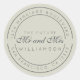 Chic, modern und einfach Hochzeitskalligraphie klassischer Rundaufkleber mit dem Text der Zukunft Mr. und Mrs. in Off-Black-elegante Drehkalligraphie auf silbergrünem Hintergrund. Fügen Sie einfach Ihren Namen und Ihre Adresse hinzu. Exklusiv für Sie entworfen von Happy Dolphin Studio. Wenn Sie Hilfe oder passende Produkte benötigen, kontaktieren Sie uns bitte unter happydolphinstudio@outlook.com. Wir helfen Ihnen gerne, Ihre Hochzeit zum schönsten Tag zu machen!
