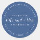 Chic, modern und einfach Hochzeitskalligraphie klassischer Rundaufkleber mit dem Text der Zukunft Mr. und Mrs. in weißer handgeschriebener, eleganter Schriftzeichen auf klassisch blauem Hintergrund. Fügen Sie einfach Ihren Namen und Ihre Adresse hinzu. Exklusiv für Sie entworfen von Happy Dolphin Studio. Wenn Sie Hilfe oder passende Produkte benötigen, kontaktieren Sie uns bitte unter happydolphinstudio@outlook.com. Wir helfen Ihnen gerne, Ihre Hochzeit zum schönsten Tag zu machen!