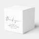 Chic minimale Graduation Party Gunst Box mit "danke" in einer modernen Drehbuch und den Namen und Party des Grafen Datum in einfacher Typografie.