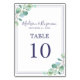 Chic Script Green Foliage Navy Blue Border Wedding Tischnummer