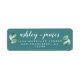 Das schicke, moderne und schlichte Ehering-Adressetikett mit Ihren Namen in weißer, eleganter, handgeschriebener Schrift-Kalligrafie mit einer stilvollen Touch von grünem Blattwerk auf aquamarinem Hintergrund. Fügen Sie einfach Ihren Namen und Ihre Adresse hinzu. Exklusiv für Sie entworfen von Happy Dolphin Studio. Wenn Sie Hilfe oder passende Produkte benötigen, kontaktieren Sie uns bitte unter happydolphinstudio@outlook.com. Wir helfen Ihnen gerne, Ihre Hochzeit zum schönsten Tag zu machen!