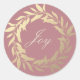Chic Script Joy Gold Wreath Weihnachts Dusty Rose Runder Aufkleber