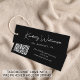 Elegante und schicke Kleidung, Accessoires, Schmuck, Boutique, etc., schwarzes Label hängen Anhänger mit minimalistischem Flair mit Ihrem Namen oder Ihrer Marke in einem stilvollen, weißen Schrift und zusätzlichen Text, wenn gewünscht in der modernen weißen Typografie. Fügen Sie auf der Rückseite einen zusätzlichen Text hinzu und geben Sie eine URL-Adresse ein, um einen scannbaren QR-Code zu erstellen, der mit Ihrer Website, Ihrem Portfolio, Ihrem Social-Media-Profil oder einer anderen Plattform verbunden ist, auf der Ihre Arbeit und Produkte präsentiert werden. Dies macht es den Kunden leicht, Ihre Marke zu erkunden.
