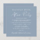 Chic dusty blue elopement oder private Hochzeitsankündigung und Hochzeitsempfang. Die Vorderseite zeigt "Happily Ever After Party" in einer Mischung aus einfachen, weißen Schriften und einem modernen, weißen Drehbuch. Personalisieren Sie Ihre Ankündigung und Einladung und fügen Sie Ihre Namen in ein signaturähnliches Skript ein. Geben Sie auf der Rückseite Ihre Hochzeitswebsite-Adresse ein, um einen QR-Code zu erstellen, den Ihre Gäste online scannen können, um weitere Informationen wie Anfahrtsbeschreibung und Unterkunft zu erhalten und Ihren Namen und das Datum(e) hinzuzufügen.