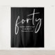 Chic schwarz 40. Geburtstag Party Tapisserie Hintergrund, Willkommensschild und Foto-Requisite mit "vierzig" in einem stilvollen weißen Drehbuch und Ihr Name und das Datum in der modernen weißen Schrift gezeigt.