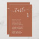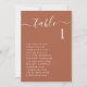 Chic terracotta Hochzeitskarte mit "Tisch" in einem eleganten, weißen Drehbuch mit Wimpern, die Tischnummer in klassisch weißen Serifentypografie und die Namen Ihrer Gäste in modernen weißen Schriften. Erstellen Sie jede Tabelle Sitzplakette und fügen Sie eine nach der anderen in Ihren Warenkorb, dann Karo aus, sobald alle Tische im Warenkorb sind.