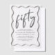Erleben Sie ihre 50. Geburtstagsfeier mit dieser Papiereinladung aus Pergament mit einem trendigen, wellenförmigen Rahmen, "fünfzig" in einem schicken, großen Drehbuch, ihrem Namen in eleganter Serifentypografie und den Party-Details in einfacher, moderner Schrift. Wenn gewünscht, können Sie es auf einem Foto der Ehre für eine anspruchsvolle und zeitlose Touch überlagern.