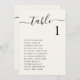 Moderne und schicke helle Hochzeitstischkarten mit "Tisch" in einem stilvollen Drehbuch mit Swashes, die Tischnummer in eleganter Serifentypografie und die Namen Ihrer Gäste in einfacher Typografie. Erstellen Sie jedes Tischplatzierungsdiagramm individuell und fügen Sie es Ihrem Warenkorb einzeln hinzu, dann Karo aus, sobald alle Tische in Ihrem Warenkorb sind.