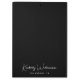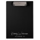 Stilvolle schwarze Zwischenablage mit minimalistischem Ambiente mit Ihrem Namen oder Ihrer Geschäftsmarke in einem schicken, weißen Signaturenskript. Fügen Sie unten einen zusätzlichen Text in einfacher, moderner weißer Schrift hinzu.