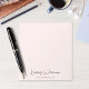 Leicht rosa Notizblock für Ihren persönlichen oder geschäftlichen Gebrauch mit Ihrem Namen oder Ihrer Marke in einem schicken Signaturenskript gezeigt. Fügen Sie unten einen zusätzlichen Text in einfacher moderner Schrift hinzu.