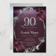 Chic Silver Frame Burgundy Rose 90. Geburtstag Einladung