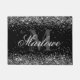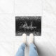 Stilvolle Silver Glitzer Black and White Monogram Doormat mit einem anpassbaren Kalligraphieskriptnamen und fett formatierter Monogramm Vorlage. Eine schicke, mädchenhafte personalisierte Tür für Ihr neues Zuhause- oder Studentenzimmer.