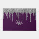 Genießen Sie dieses elegante Design mit Ihrem Namen und Monogramm oder initial mit schicken und funkelnd silbernen Glitzer-Tropfen auf einem tiefen lila Hintergrund.