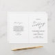 Einfaches Budget Hochzeitsprogramm mit "Hochzeit von" in Kalligrafie zusammen mit Ihren Hochzeitsdetails in Schwarz und Weiß. Die Innenseite hat Ihre Reihenfolge der Zeremonie und Hochzeitsfeier und der Rücken hat Ihre personalisierte Danksagung Nachricht. Ein minimalistisches Design mit schicker Typografie für eine elegante Touch.