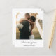 Einfaches Foto-Budget Hochzeit Dankeschön-Karte mit "danke" in Kalligrafie zusammen mit Ihren Namen unter Ihrem Lieblingsfoto. Die Rückseite hat Ihre personalisierte Danksagung in schwarz-weiß. Ein minimalistisches Design mit schicker Typografie für eine elegante Touch.