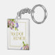 Dieser schicke und elegante Schlüsselanhänger ist als Gutes oder Geschenk für Ihre Trauzeugin konzipiert. Das wunderschöne Design besticht durch eine goldene Schrift und einen Rand mit einer Reihe pastellfarbener Frühlingsblumen in den Ecken, darunter Rosen, lila Hydrangea, weiße Orchideen und Calla-Lilien. Ein guter Weg, um dem wichtigsten Mitglied Ihres Brautparty zu danken, dass es ein Teil Ihrer Hochzeit ist.