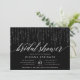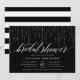 Unsere eleganten Brautduscheinladungen in schicken Schwarz-Weiß verfügen über einen schwarzen Hintergrund mit weißen Lichterketten über die Oberseite und "Brautparty" in schicken Kalligraphie-Schrift-Typografie. Personalisieren Sie Ihre Brautparty- und Registrierungsdaten in weißer Schrift.
