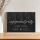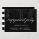 Unsere eleganten Einladungen in elegantem Schwarz/Weiß mit einem schwarzen Hintergrund mit weißen Lichterketten über der Oberseite, und "Engagement Party" in schicker Kalligraphie Schrift Typografie. Personalisieren Sie Ihre Feierlichkeiten mit Ihren Verlobungen unter dem weißen Buchstaben.